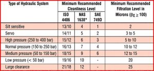 Component manufacturers specify the minimum cleanliness level required for their products. Operating below that level shortens service life proportionally. The target is not the same for every system: a servo valve requires far cleaner fluid than a cylinder.