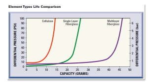 Element life is read from two curves: differential pressure and dirt-holding capacity. As an element loads with captured contamination, differential pressure across it rises. When differential pressure hits the bypass valve threshold, the bypass opens — and unfiltered fluid moves through the system.